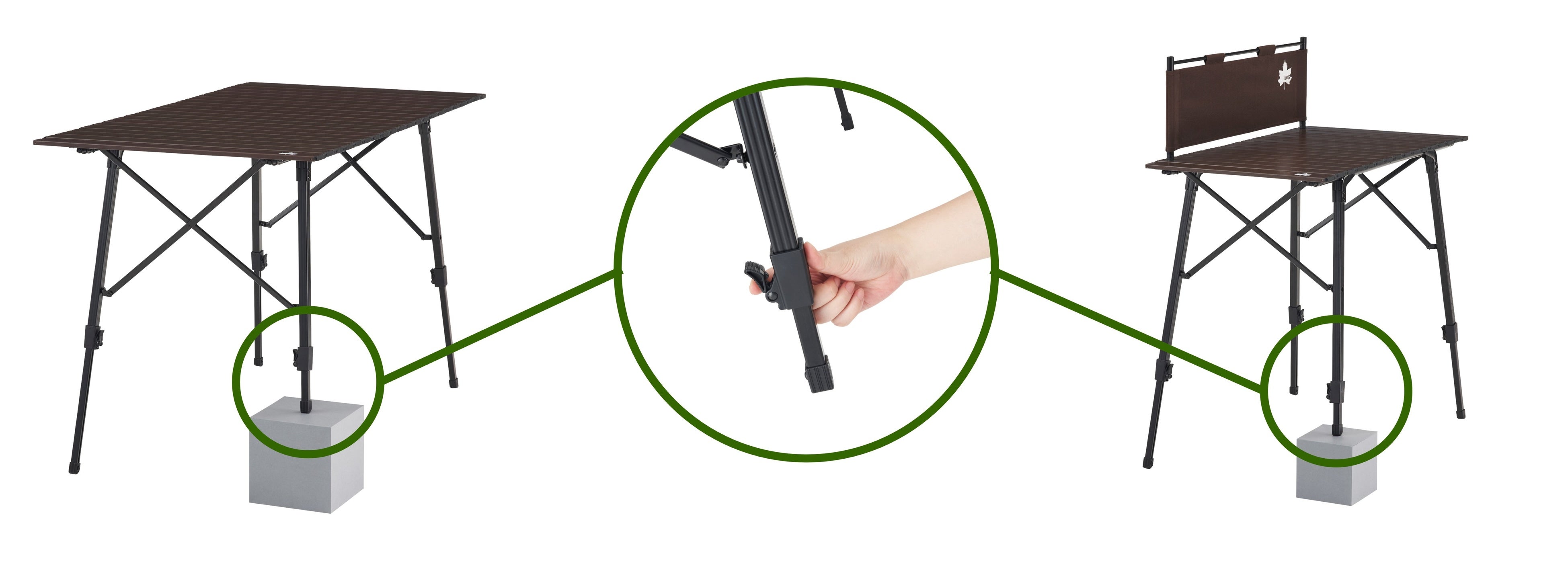 凸凹キャンプ場でもテーブル天板を水平にできる新発想「丸洗いアジャスタテーブル」シリーズ3種 新発売!