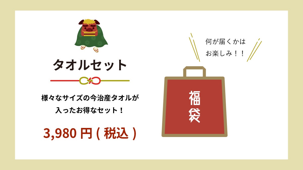 様々なサイズの今治タオルが入ったお得な福袋です。
