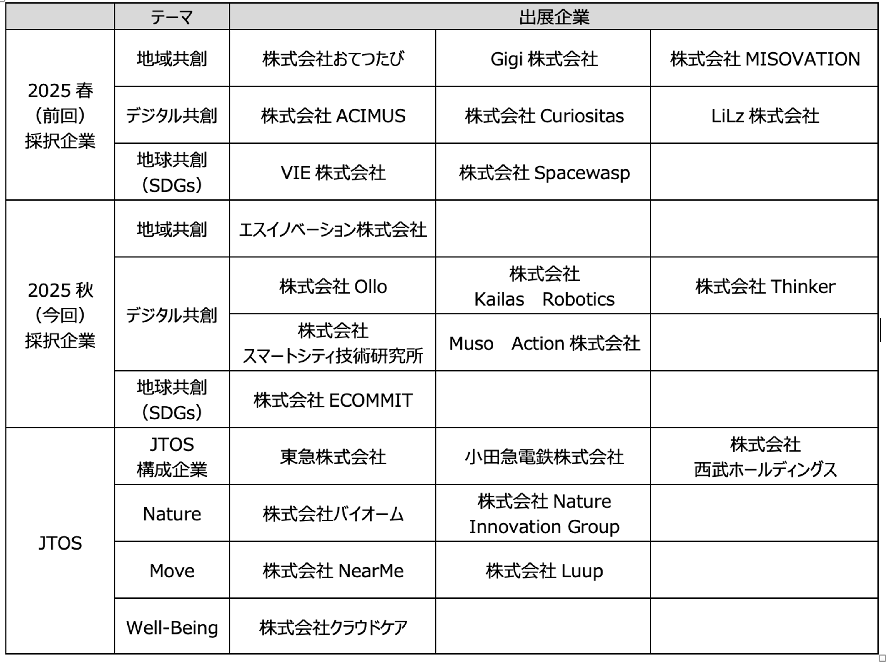 <2025秋の採択企業>
