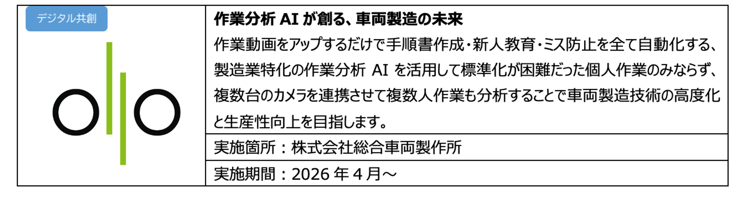 エスイノベーション株式会社、株式会社Ollo(オロ)、株式会社Kailas(カイラス) Robotics(ロボティクス)、株式会社Thinker(シンカー)、株式会社スマートシティ技術研究所、Muso(ムソウ) Action(アクション)株式会社、株式会社ECOMMIT(エコミット)