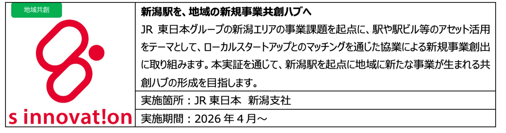 ○ 東日本旅客鉄道株式会社(代表取締役社長:喜㔟 陽一、以下「JR東日本」)とJR東日本スタートアップ株式会社(代表取締役社長:柴田 裕)は、ベンチャー企業や優れた事業アイデアを有する方々との協業によるビジネス創造活動 「JR東日本スタートアッププログラム」を2017年から進めてきました。