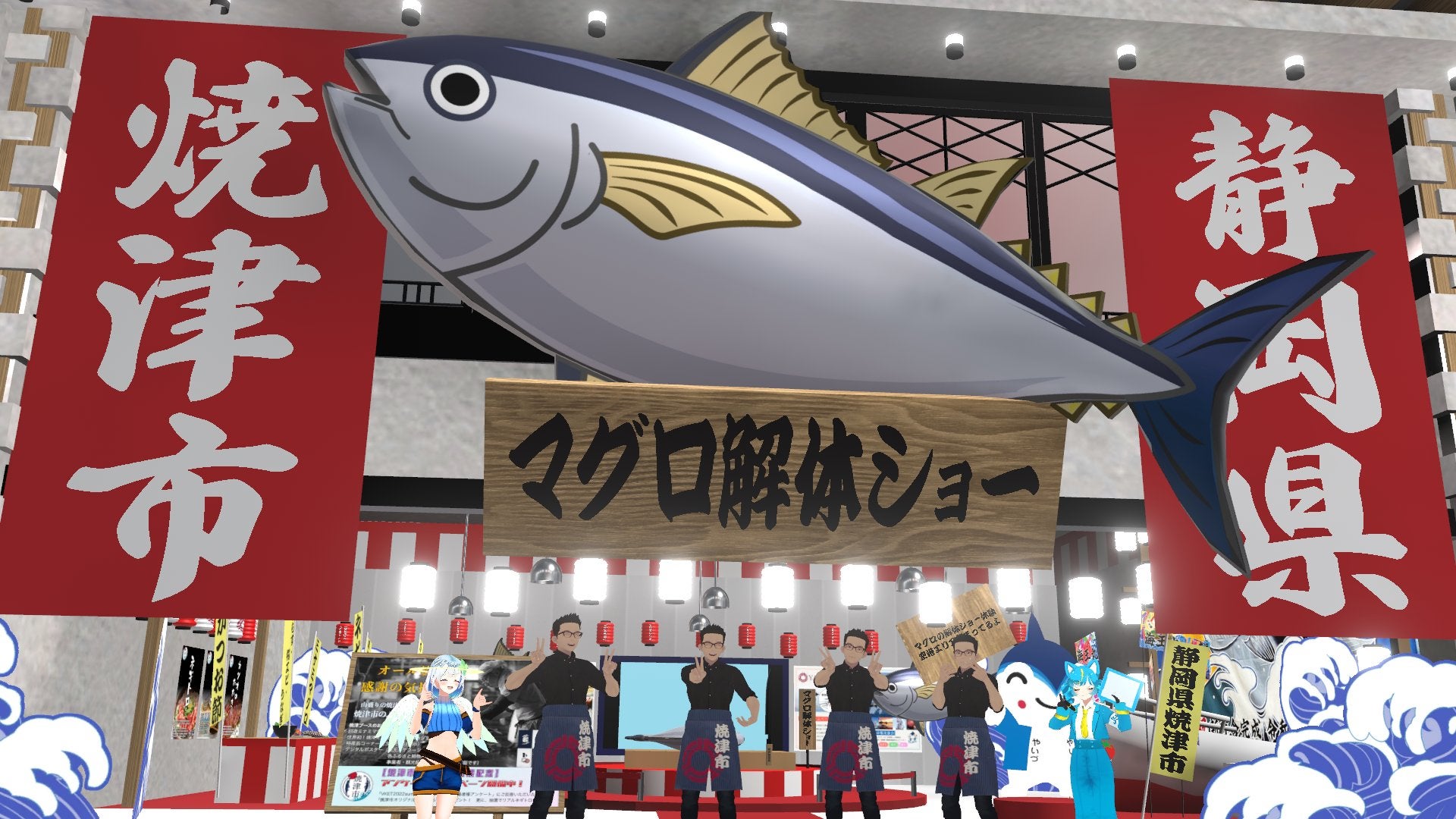 バーチャルマーケットへ4回連続ご出展いただき、市の魅力や自慢の特産品をPRした静岡県焼津市様のブースへは、これまで累計のべ70万人の方々がご来場されました。2024年7月2日には、HIKKYとメタバースを活用した地域活性化に関する包括連携協定を締結。今後、メタバースを通じた魅力発信や体験価値の提供といったノウハウを活用し、市内外の多様な関係者を巻き込む地域活性化の取り組みを促進します。