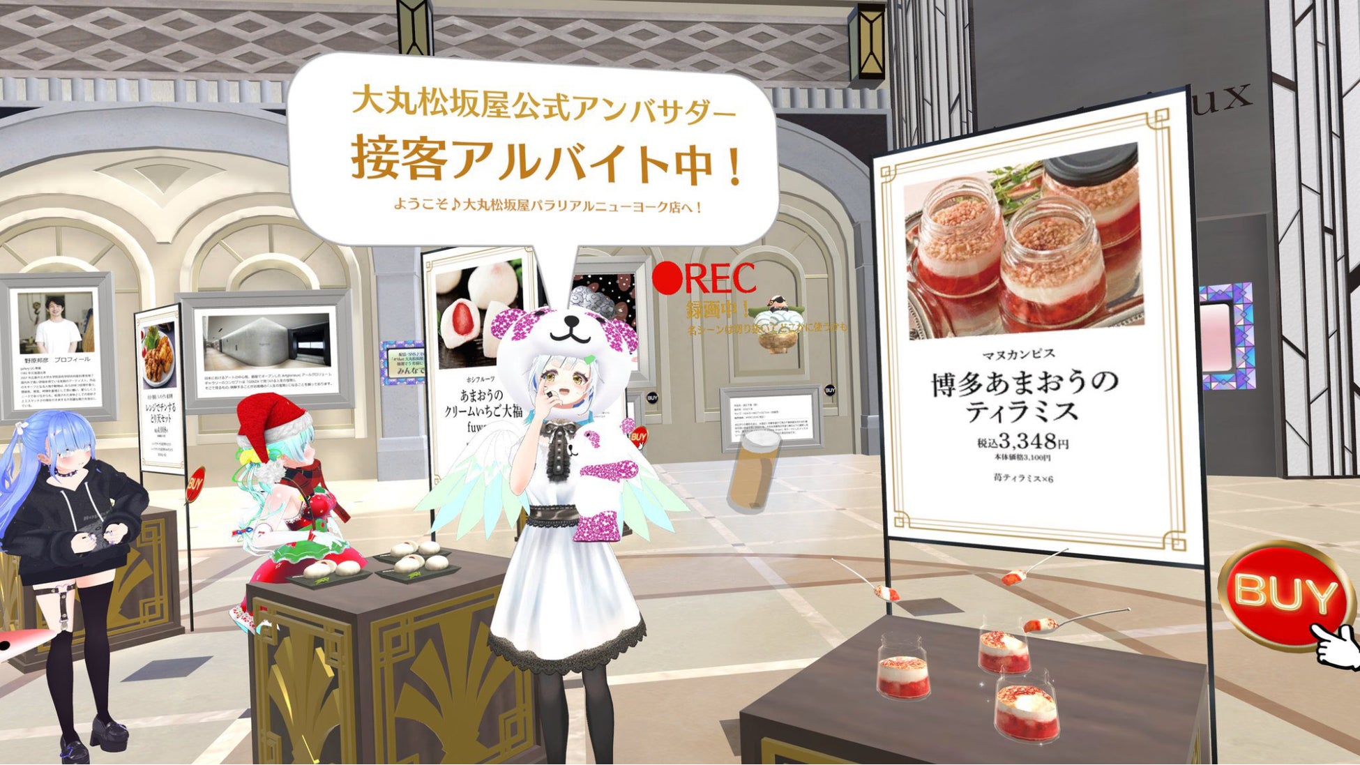 大丸松坂屋百貨店のバーチャル店舗「バーチャル大丸・松坂屋」を、バーチャルマーケットにて展開。 精巧に作られた食品の3Dモデルを展示し、自由に手に取り形状や中身などを確認しながらリアル食品が購入できる場を提供しました。さらに商品知識豊富な大丸松坂屋百貨店スタッフと、VRに精通した大丸松坂屋アンバサダーによるアバター接客も実施。リアル食品の他、食品3Dモデルも販売しました。