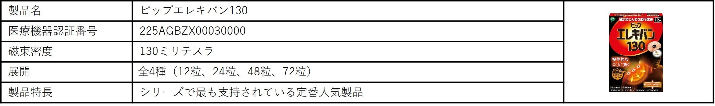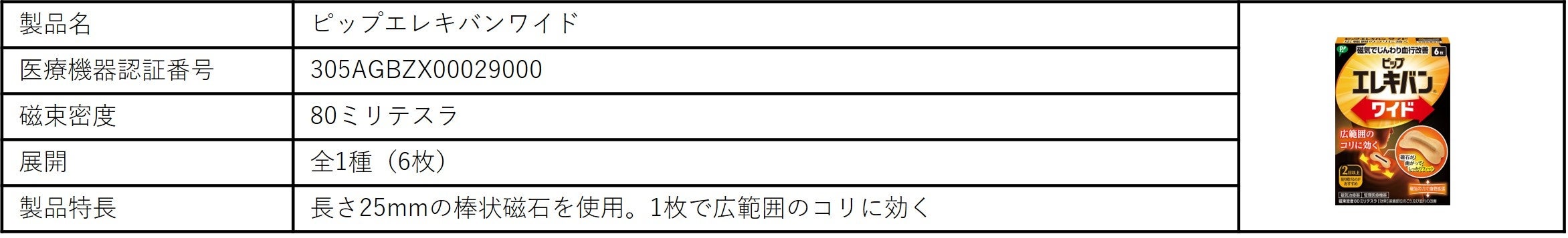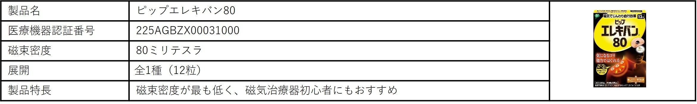 「ピップエレキバン」:ピンポイントでコリを解消する「ピップエレキバン」。磁気が体内成分に働きかけて血行を良くし、コリの原因となる老廃物を流します。効果は、装着部位のこり及び血行の改善です。