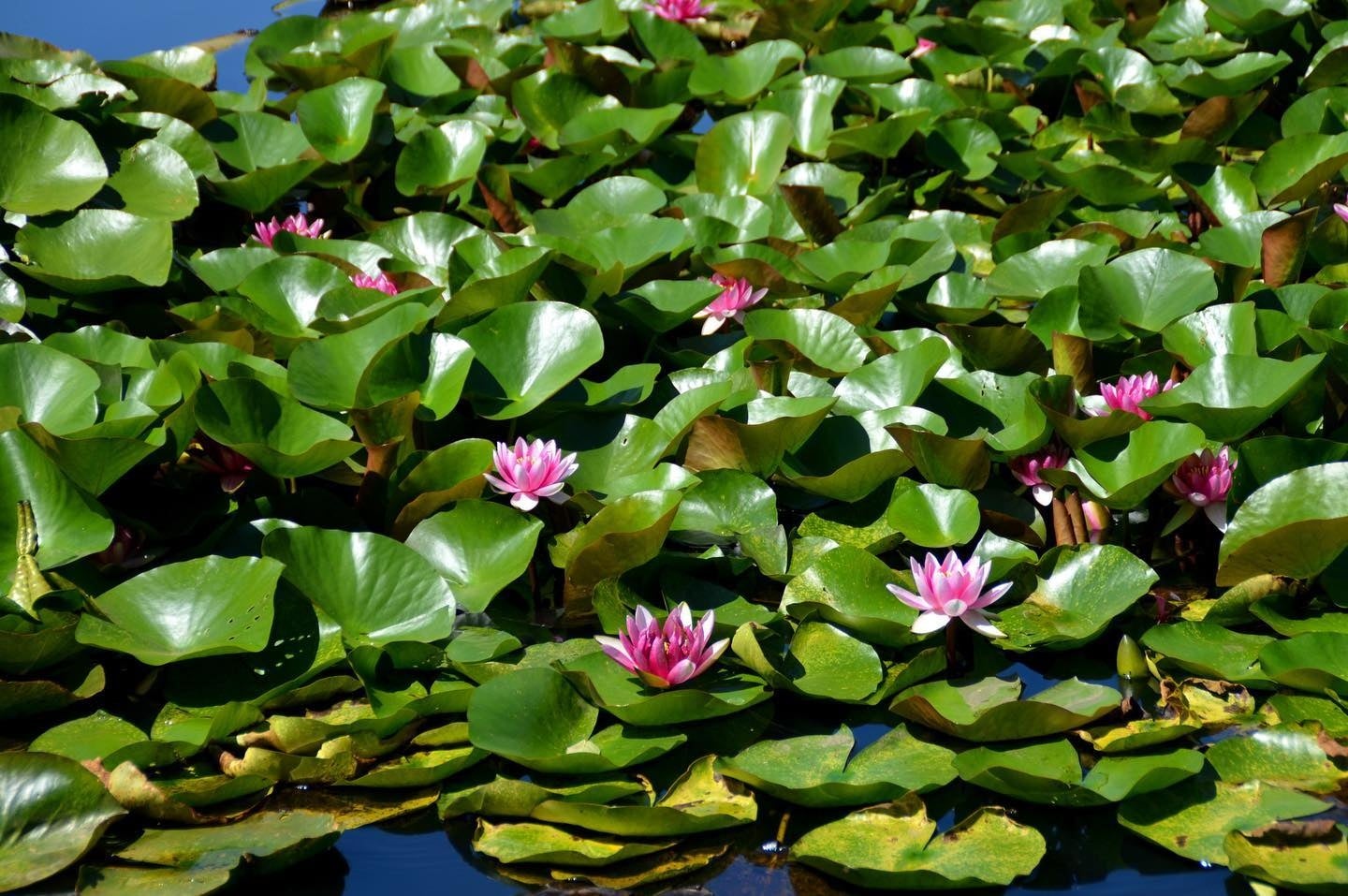 水辺を彩る花菖蒲(ハナショウブ)と睡蓮(スイレン)の競演