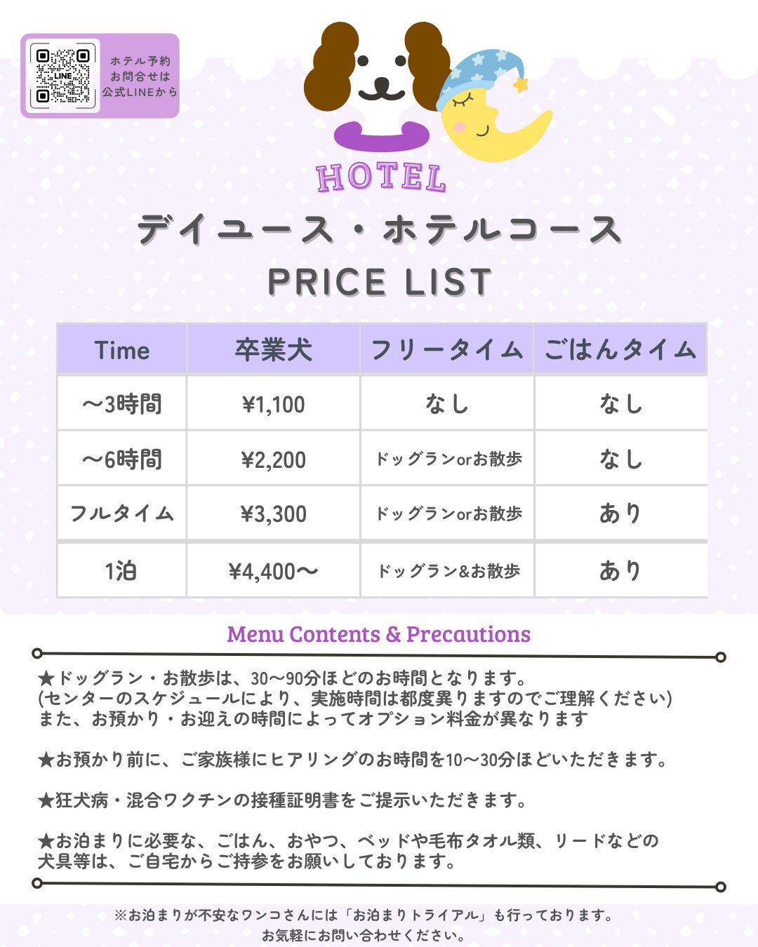 ワンコたち自身も慣れ親しんだ環境と、知っているスタッフがいることで、安心してお留守番できる場所を提供し、ペットとの共生生活をより豊かなものにしていただくことを目的としています。