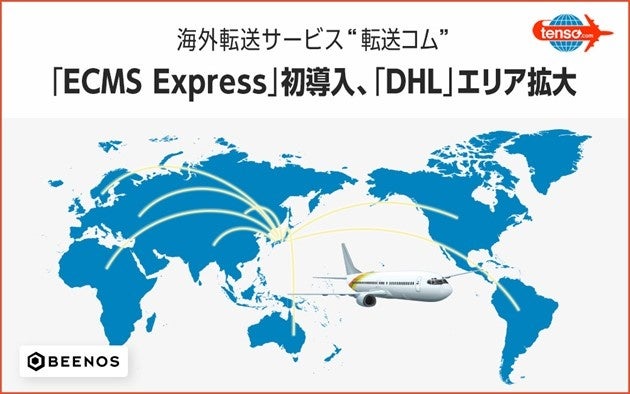BEENOS株式会社(東証一部:3328)の連結子会社で、越境ECをサポートする海外転送サービス「転送コムhttps://www.tenso.com/jp」を運営するtenso株式会社(以下「tenso」)は、格安国際宅配便サービス 「ECMS Express」を初めて導入し、さらに国際エクスプレス輸送サービス「DHL」の導入エリアを拡大しました。「ECMS Express」の導入エリアは、アメリカ、台湾、香港、韓国、シンガポール、そして「DHL」に関しては従来のアメリカ、カナダ、オーストラリア、サイパン、グアムに加え、新たに世界77ヵ国/エリアで追加となります。これにより、海外のお客様に従来の配送方法よりも安く、最適な配送手段をお選びいただけるようになります。