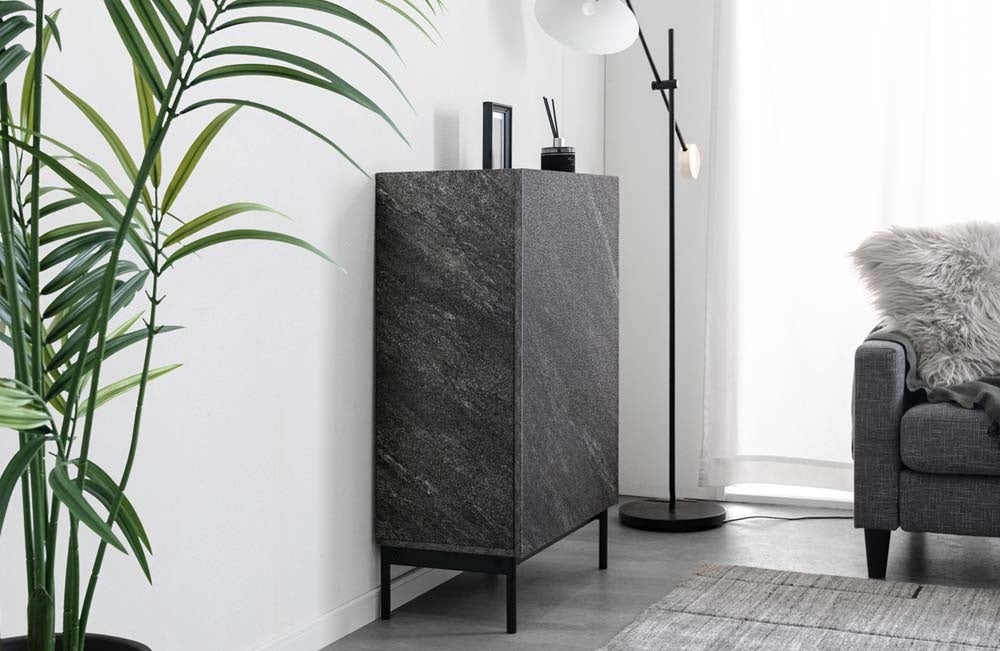 まるでキャビネットのような見た目のゴミ箱として生まれた『魅せるゴミ箱』は取っ手や装飾をなくしたシンプルなデザインとシックな石目調でリビングに設置しても違和感なく、モダンな空間にしてくれるデザインになっています。
