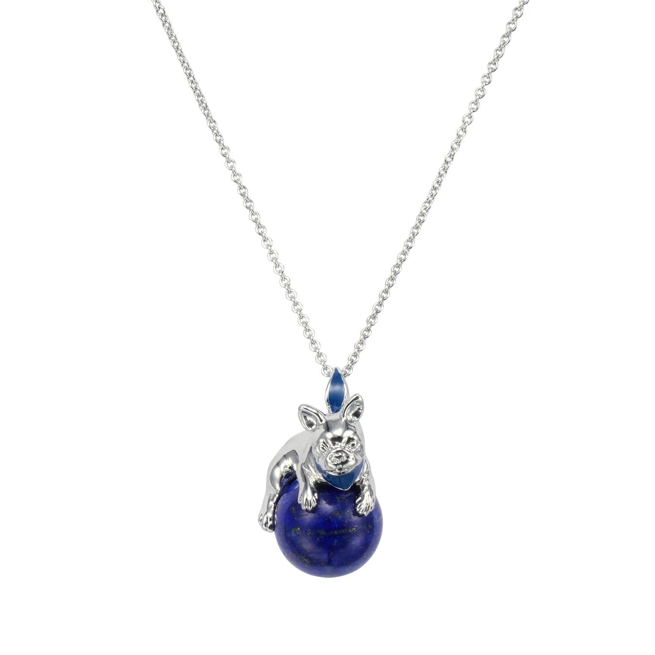 メタルの硬質な輝きと、ラピスラズリのブルーカラーのコントラストが美しいフレンチブルドッグのネックレス。 明るく感情表現がとても豊かなフレンチブルドッグの、どこかユーモラスな表情にも注目。