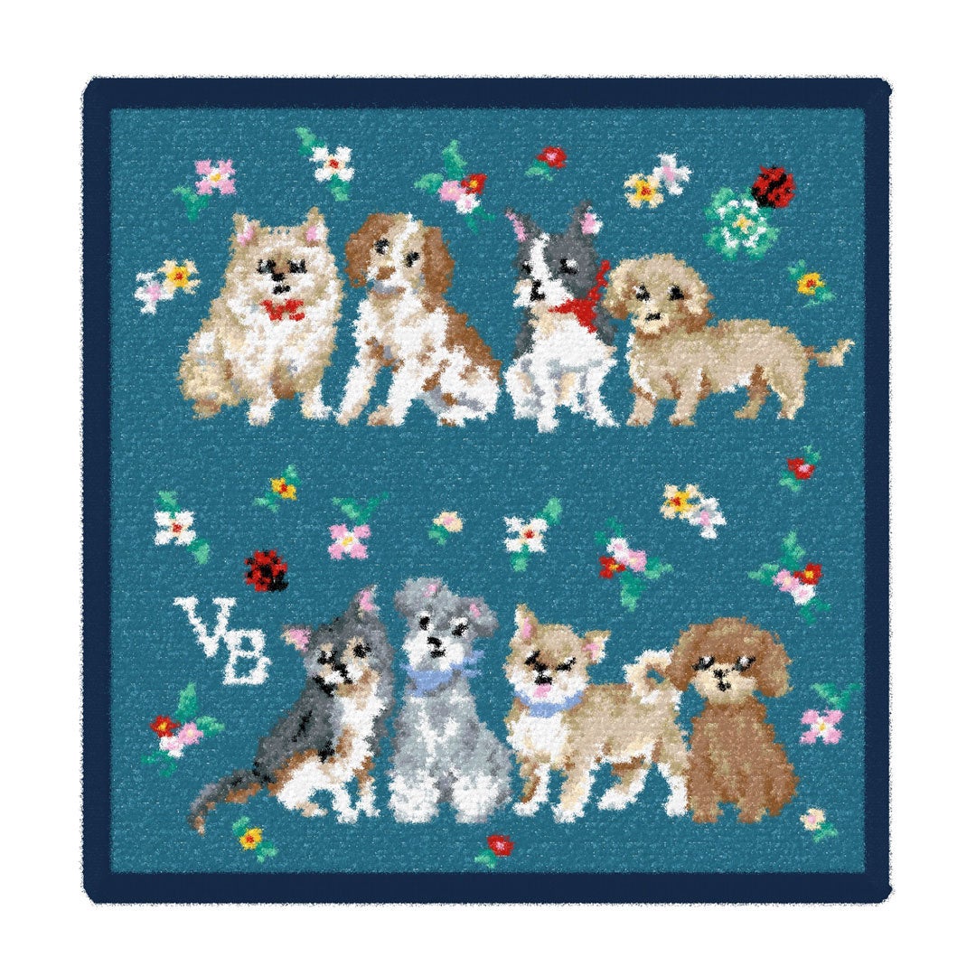 フェイラー製ハンカチは様々な種類の犬たちを愛らしく描いたオリジナルパターンのデザイン。