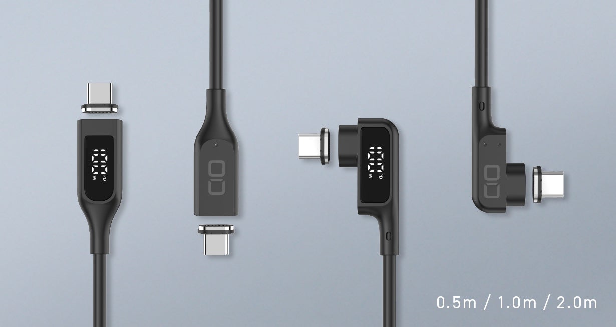 マグネットの利便性を最大限高める充電シーンにあわせた3種類の長さ(0.5m・1m・2m)とコネクタタイプ(ストレート・L字)、ディスプレイの有無もお選びいただけます。