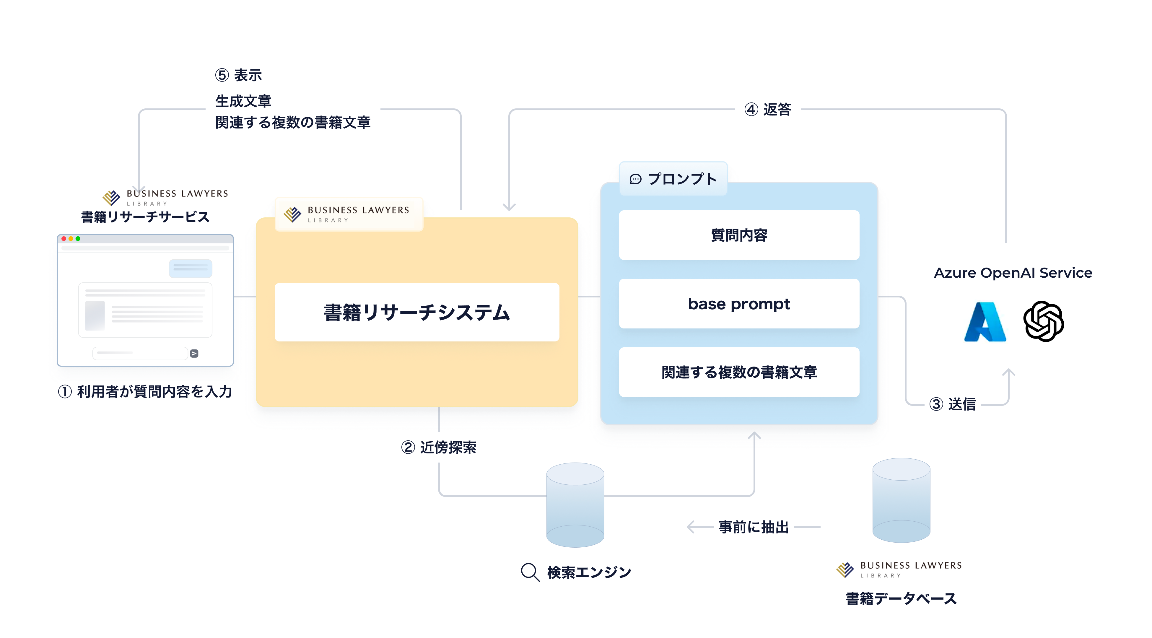 本サービスは、マイクロソフト社が提供するクラウドプラットフォーム「Microsoft Azure(マイクロソフトアジュール)」と、BUSINESS LAWYERS LIBRARYの検索エンジンを活用したシステムです。
