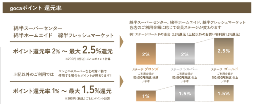 ※gocaポイント還元率の詳細は、下記表を参照