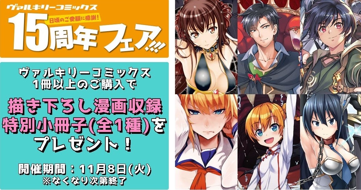 ヴァルキリーコミックス15周年フェア開催!!お買い上げ1冊ごとに人気作品の描き下ろし漫画を収録した小冊子をプレゼント!