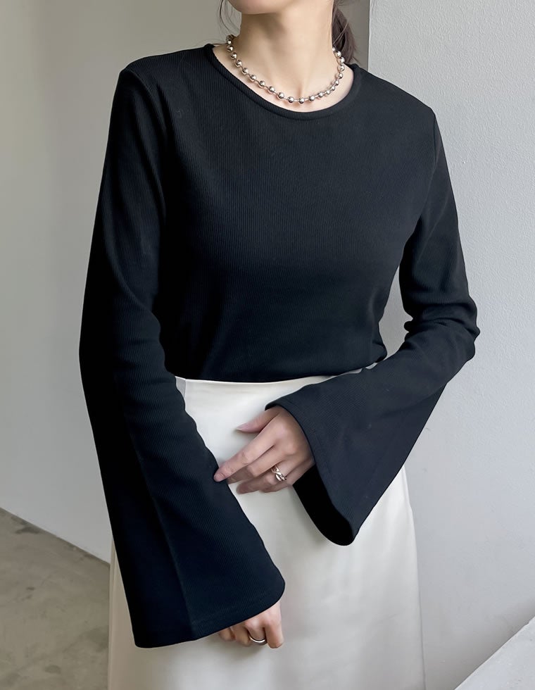 商品名:クルーネックフレアスリーブリブカットソートップス