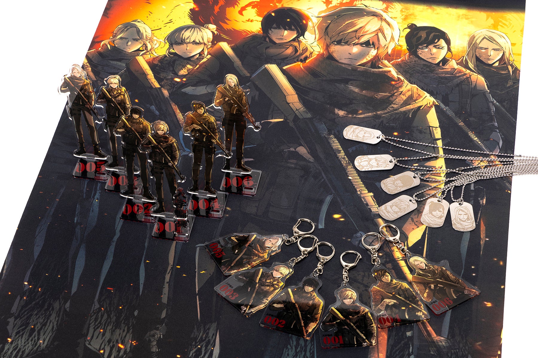 さらに、傭兵時代の帯刀壮馬たちの描き下ろしイラストがアクリルキーホルダーやアクリルスタンド、タペストリー、パズルになって登場。