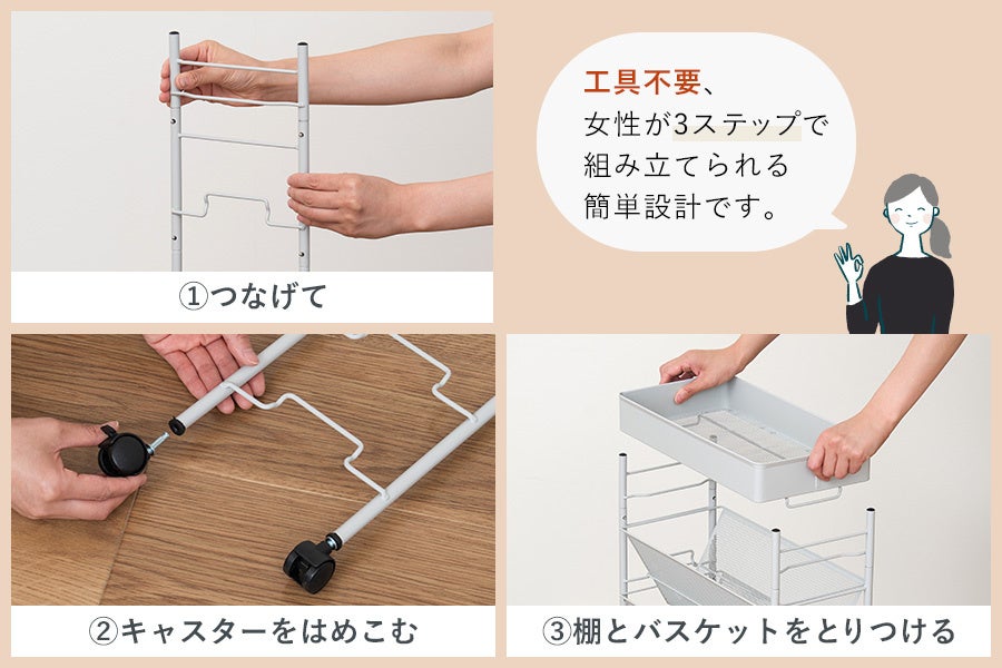 工具不要、女性が3ステップで組み立てられる、mottoleの嬉しい簡単設計製品です。