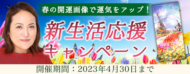 『新生活応援キャンペーン』では、様々なことが新しくなる年度始め、あなたが良いスタートを切れるよう、キャンペーン期間限定の「春の開運画像」をご用致しました。キャンペーン対象鑑定を占って頂くと開運画像をGETできます。ぜひ、この機会に大串ノリコの占いであなたの運気を上げていきましょう!