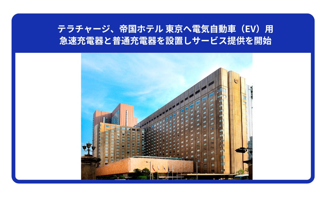 テラチャージ、帝国ホテル 東京へ電気自動車(EV)用急速充電器と普通充電器を設置しサービス提供を開始