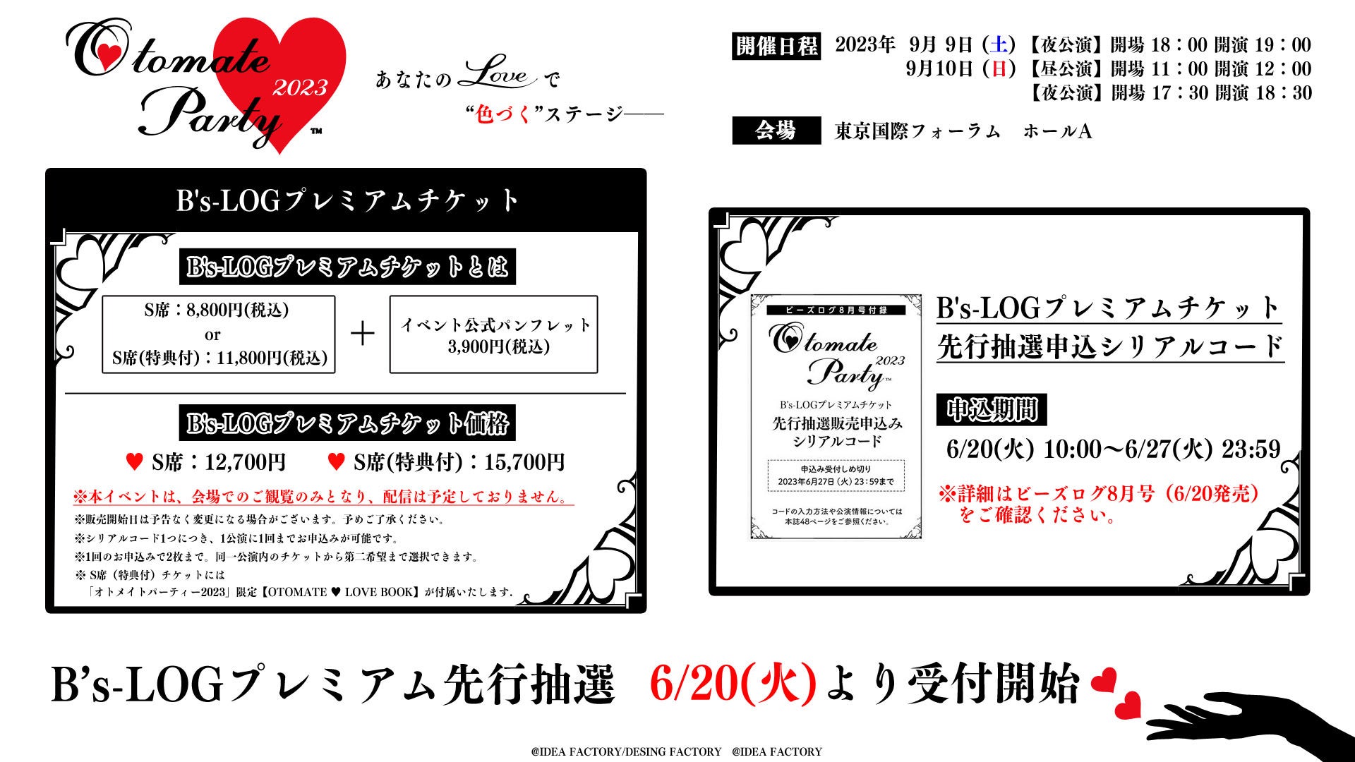 「オトメイトパーティー2023」《B’s-LOGプレミアム先行抽選》&《JTB旅行プラン海外受付》【6月20日(火)10時から】申込受付開始!