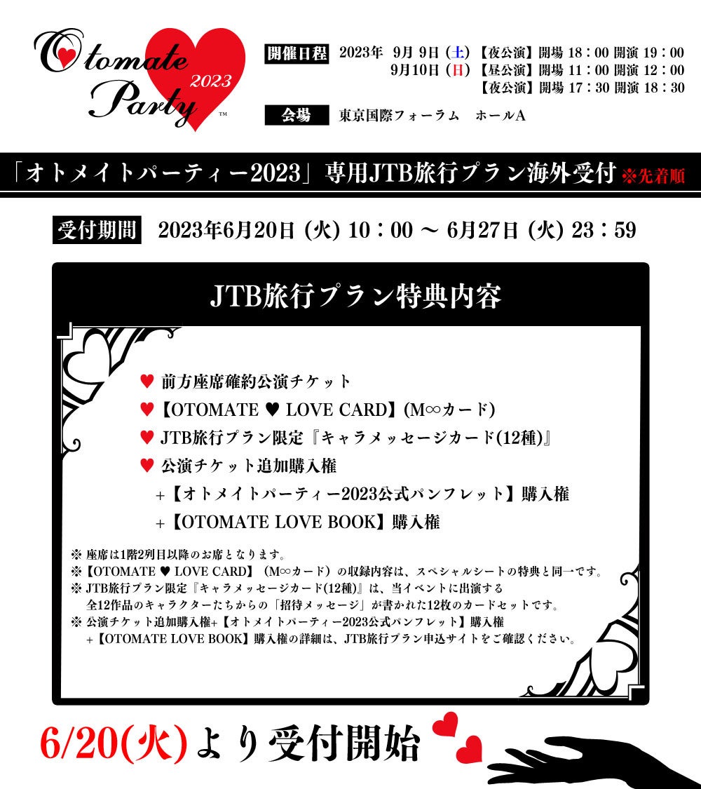 ※公演チケット追加購入権+【オトメイトパーティー2023公式パンフレット】購入権+【OTOMATE LOVE BOOK】購入権の詳細は、JTB旅行プラン申込サイトをご確認ください。
