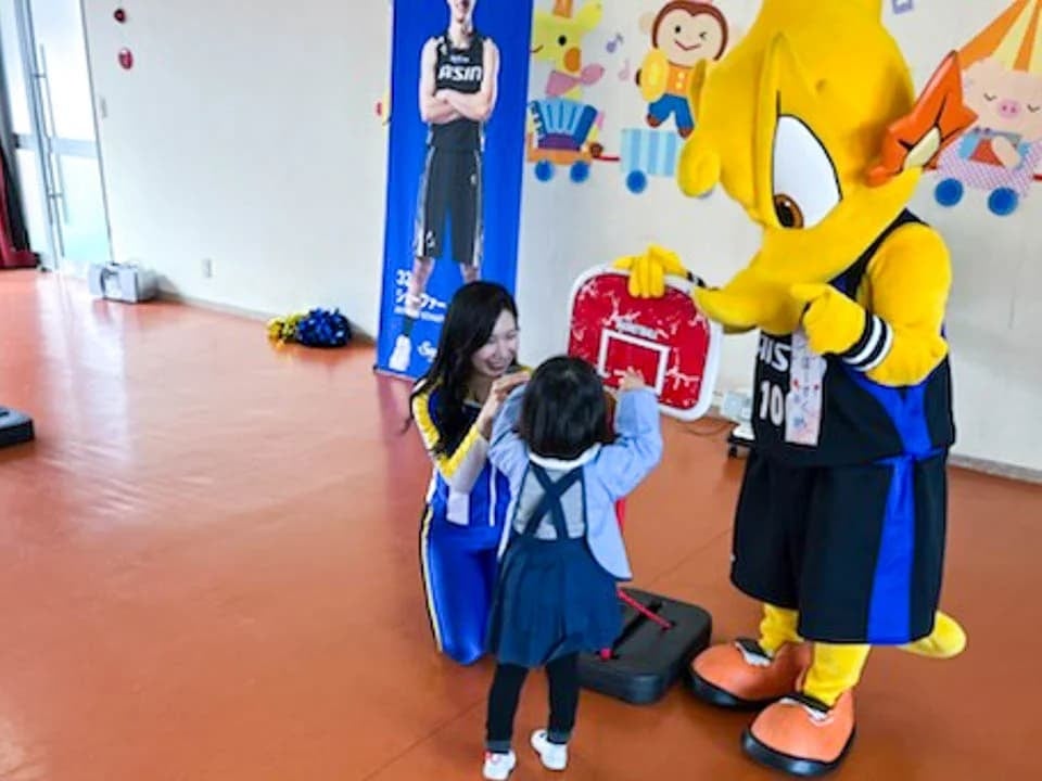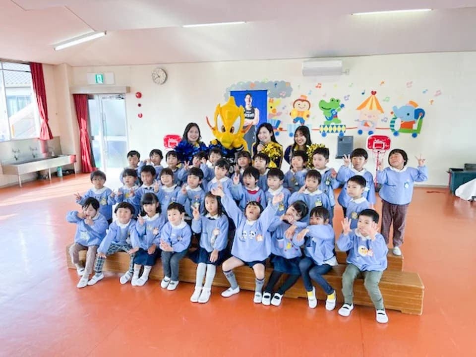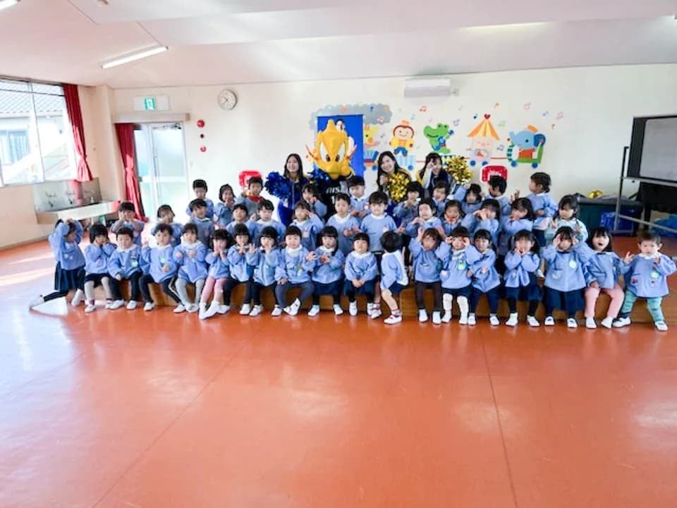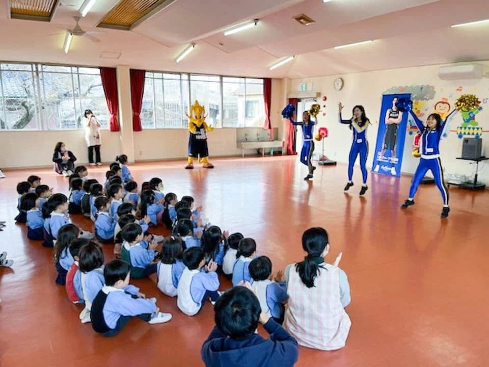 2023年12月11日(月)、シーホースくんとSuper GirlsのASAMI、SAHO、TOMOMIがともえ幼稚園(安城市)を訪問し、園児の皆さんと一緒にクイズやダンスを楽しみました。