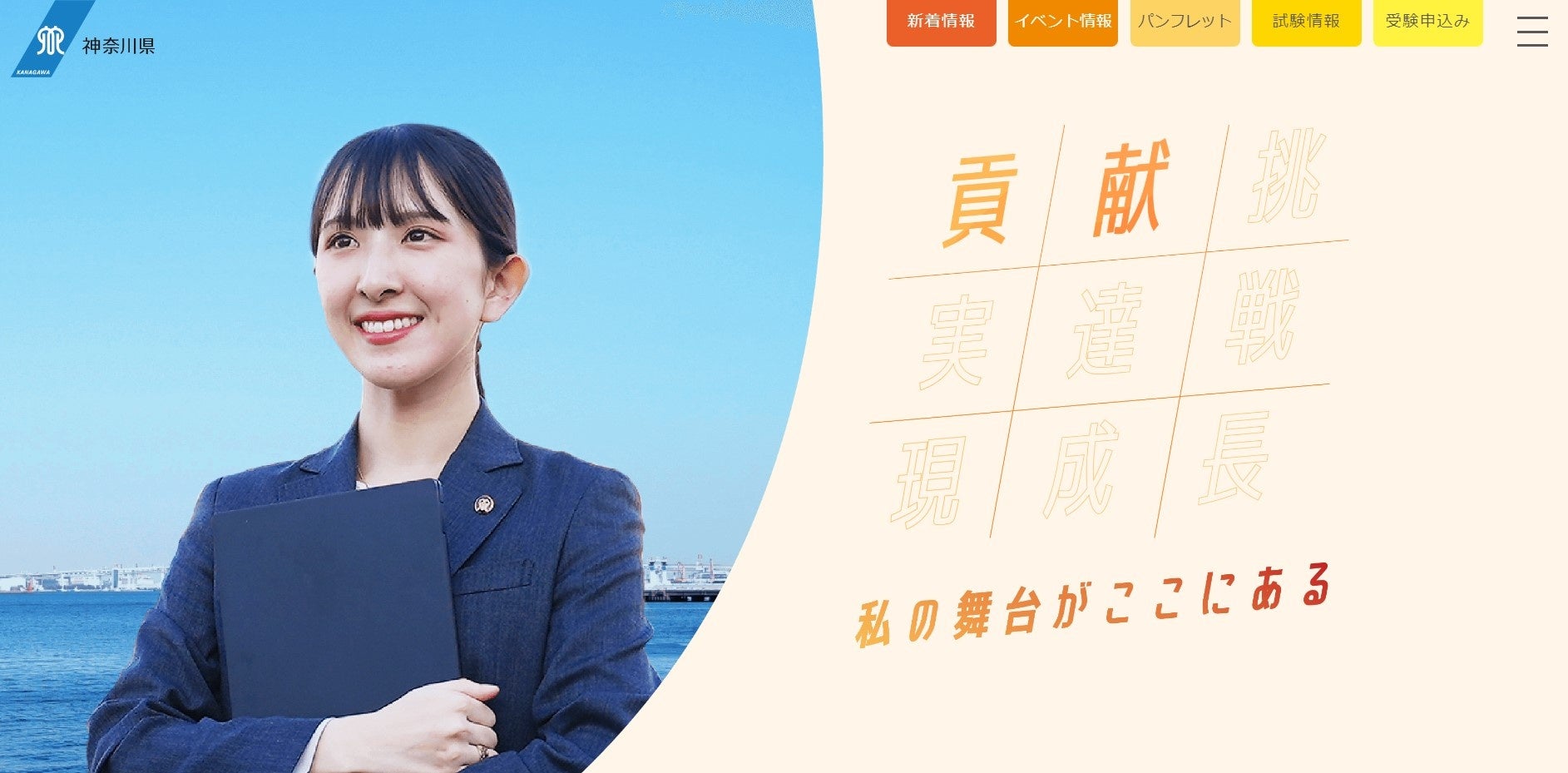 ・トップページに、舞台を表す「成長」、「挑戦」などの言葉がうつり変わる9マスを配置することで、受験者自身が好きな言葉を選び、「私が成長する舞台」、「私が挑戦する舞台」など、神奈川県という舞台(職場)で輝く自分の未来をイメージして欲しいとの思いをこめました。