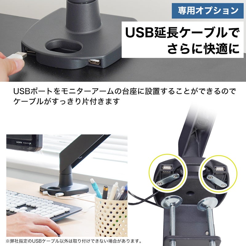 ■アーム台座にUSB延長ケーブル(別売)を2口設置可能