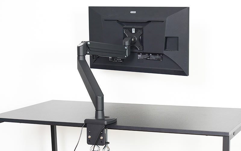 2本のクランプでデスクにしっかり固定でき、配線クリップ付きでケーブルもスッキリさせられます。