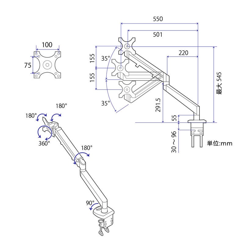 モニターアームプレミアム(ガスショック式)シングルタイプ