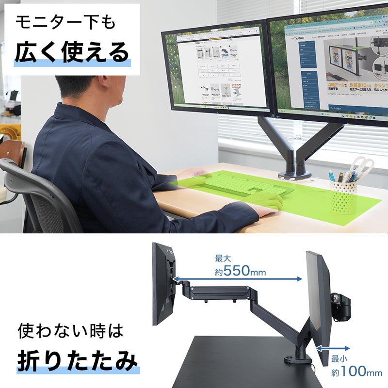そんな方におすすめの『モニターアームプレミアム(ガスショック式)シングルタイプ・デュアルタイプ』です。