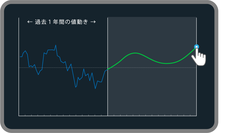 チャートメイクは、今後1年の相場の動きを予想して大まかに線を引けば、銘柄の値動きの特徴を考慮したロジック(売買戦略)およびルールの設定を自動で提案します。簡単にトレードルールをつくることができるインヴァスト独自の機能です。