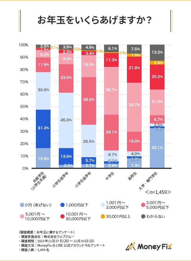 未就学児から大学・専門学生まで、年代別にお年玉であげる金額を調査しました。