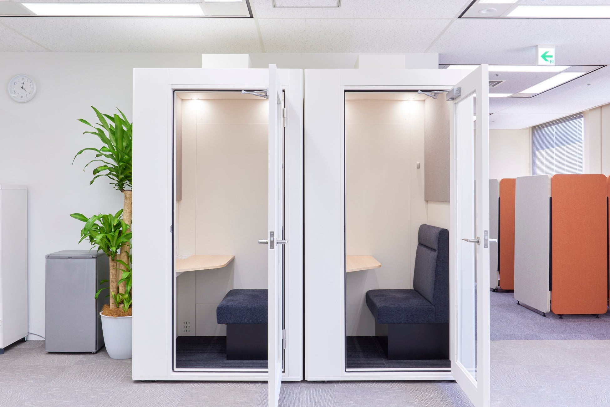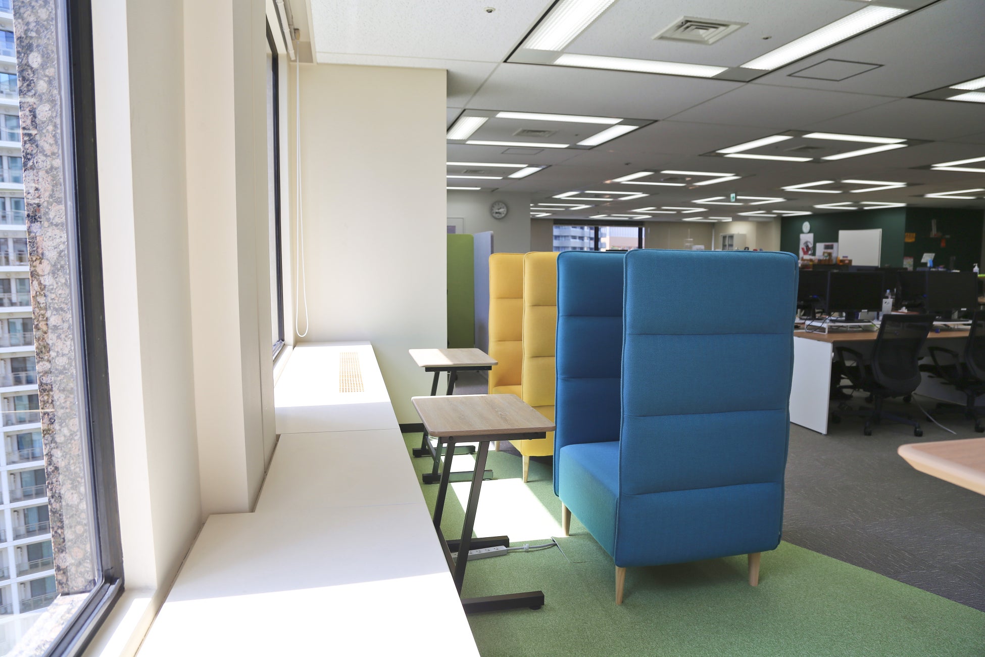 オフィスワークでも、お客様とのミーティングはオンラインというケースも増えてきました。会議室以外にもオンラインでの打ち合わせを実施できる場所や、一人で集中したい業務を行える場所を増設しました。
