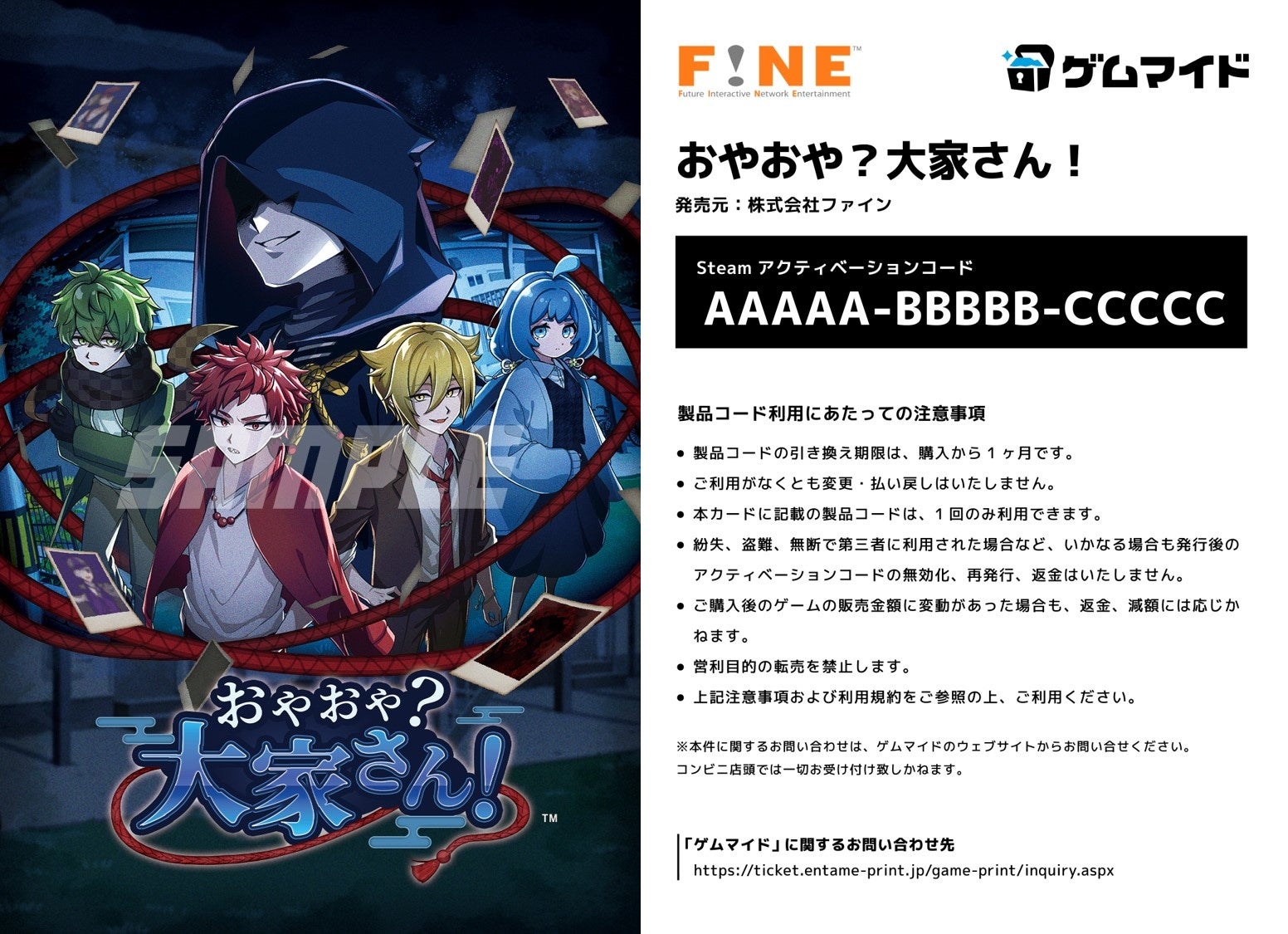 イード、「ゲムマイド」の新コンテンツとして、『おやおや?大家さん!』のブロマイド付きSteamキーコードを4月25日より販売開始