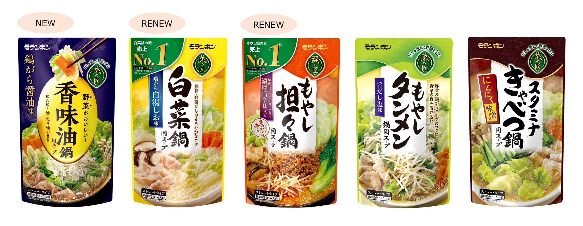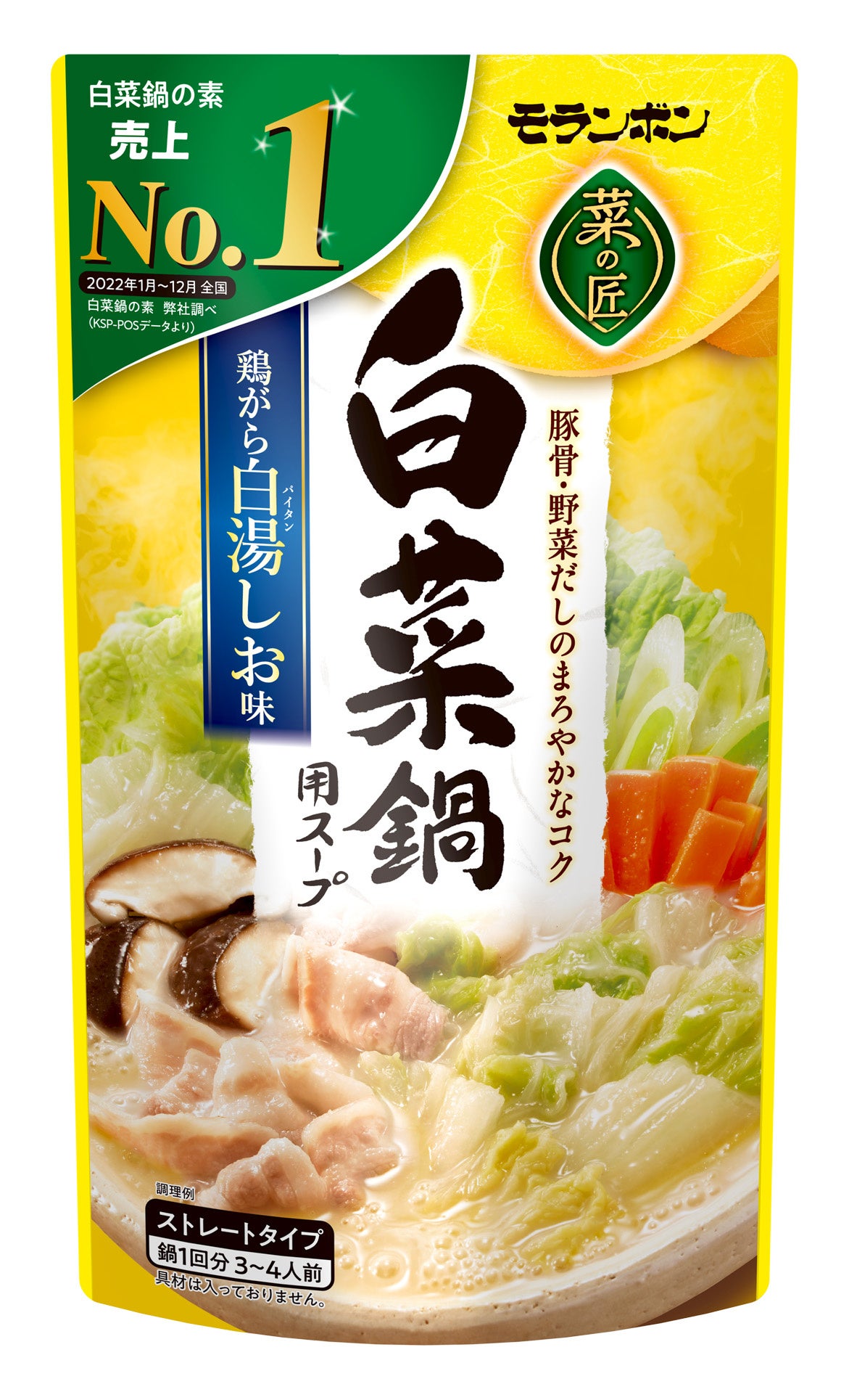 白菜鍋の素&もやし鍋の素 カテゴリーNo.1※のモランボン「菜の匠シリーズ」から!「菜の匠 白菜鍋用スープ・もやし担々鍋用スープ」※(KSP-POS 全店千人金額(全国) 22年 1-12月)