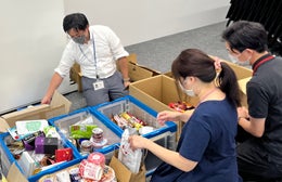 長崎市と協働するフードドライブは6月に続き今年度2回目となります。長崎本社に設置する受付窓口では、社員ボランティアが、市民や市内の企業の皆さまから提供される食料品の受付をし、地域の福祉施設や団体に寄贈できるよう仕分けを実施します。