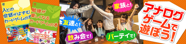 『遊べるBOOK vol.1 人との会話がはずむ カードゲームの本』は、パーティに最適なコミュニケーション系ゲームを収録、『遊べるBOOK vol.2 勉強が楽しくなる カードゲームの本』は、脳のトレーニングができるコトバや数字を使ったお勉強系ゲームを収録しています。取り外し可能な冊子には、各ゲームの分かりやすいルール説明はもちろん、コミュニケーション系のお薦めボードゲームも徹底紹介するなど、アナログゲーム初心者にも最適のパッケージです。家族で、学校で、仲間の集まりで、ぜひお楽しみください!