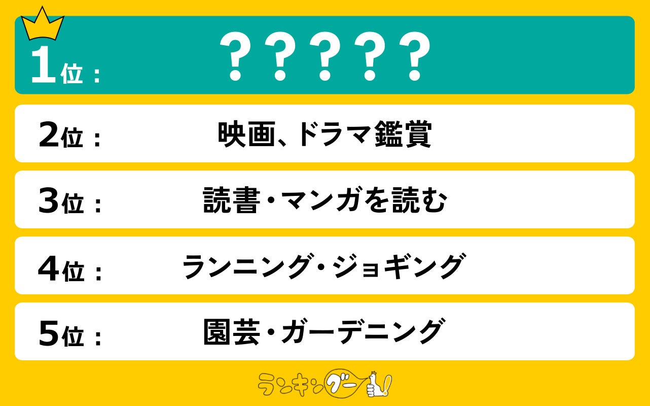 1,676票を獲得し、大差で1位に輝いたのは、健康維持に最適な『散歩・ウォーキング』!続く、2位は『映画、ドラマ鑑賞』。3位は『読書・マンガを読む』。4位は『ランニング・ジョギング』。そして、5位は『園芸・ガーデニング』という結果となりました!