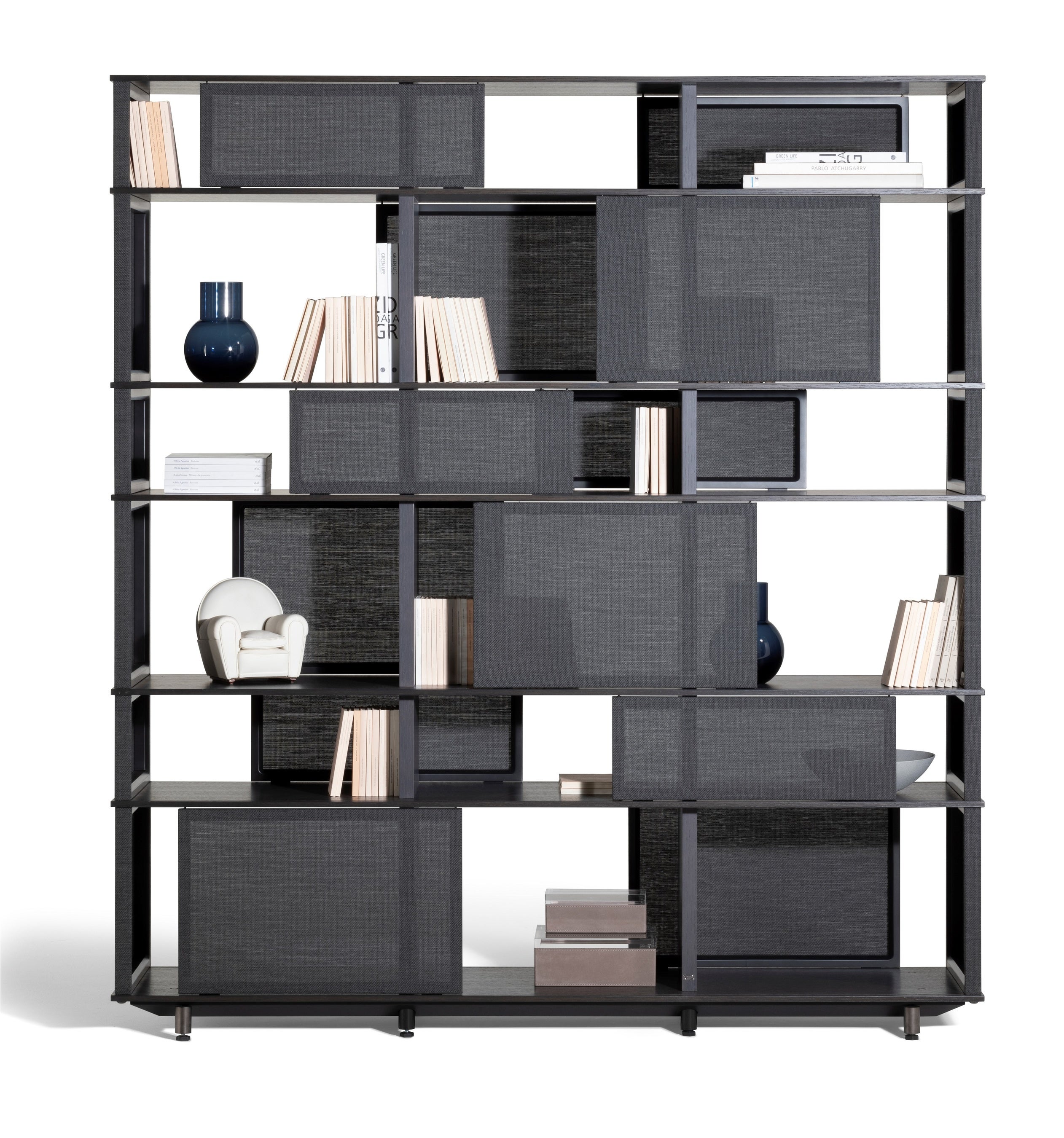 デザイナーのジャン・マリー・マッソーがスピーカーから着想を得てデザインしたキャビネット。ライトカラーとダークカラーの半透明なパネルを組み合わせることで、軽快な印象を与えます。細部にまでこだわった、デザイナーの遊び心を感じさせます。