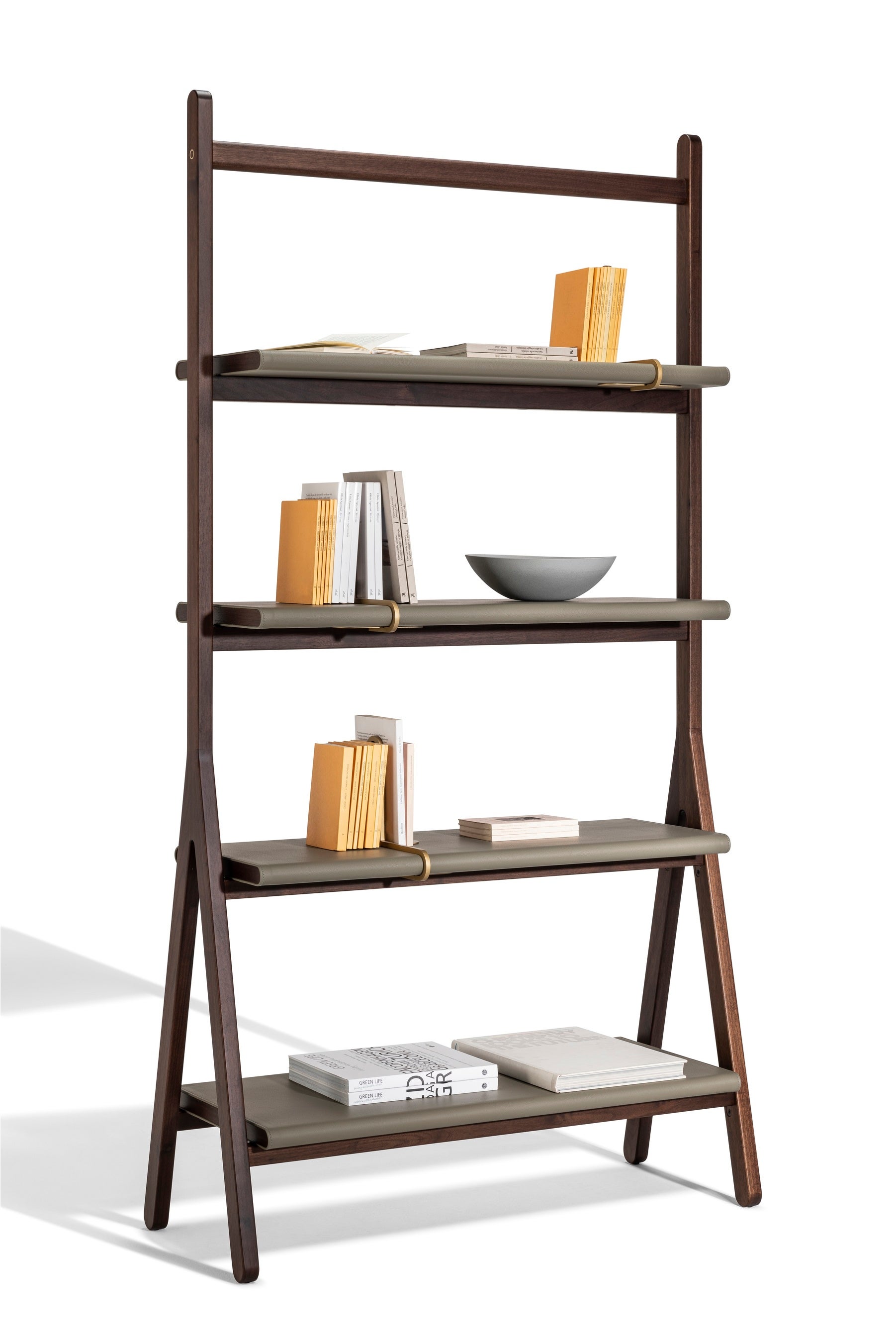 人気の「Ren」シリーズから自立式のブックケースが登場。 ウォールナット、レザー、真鍮という異素材の組み合わせで構成。 シンプルなデザインが上質な素材と精巧なディテールを際立たせ、エレガントな空間を演出します。