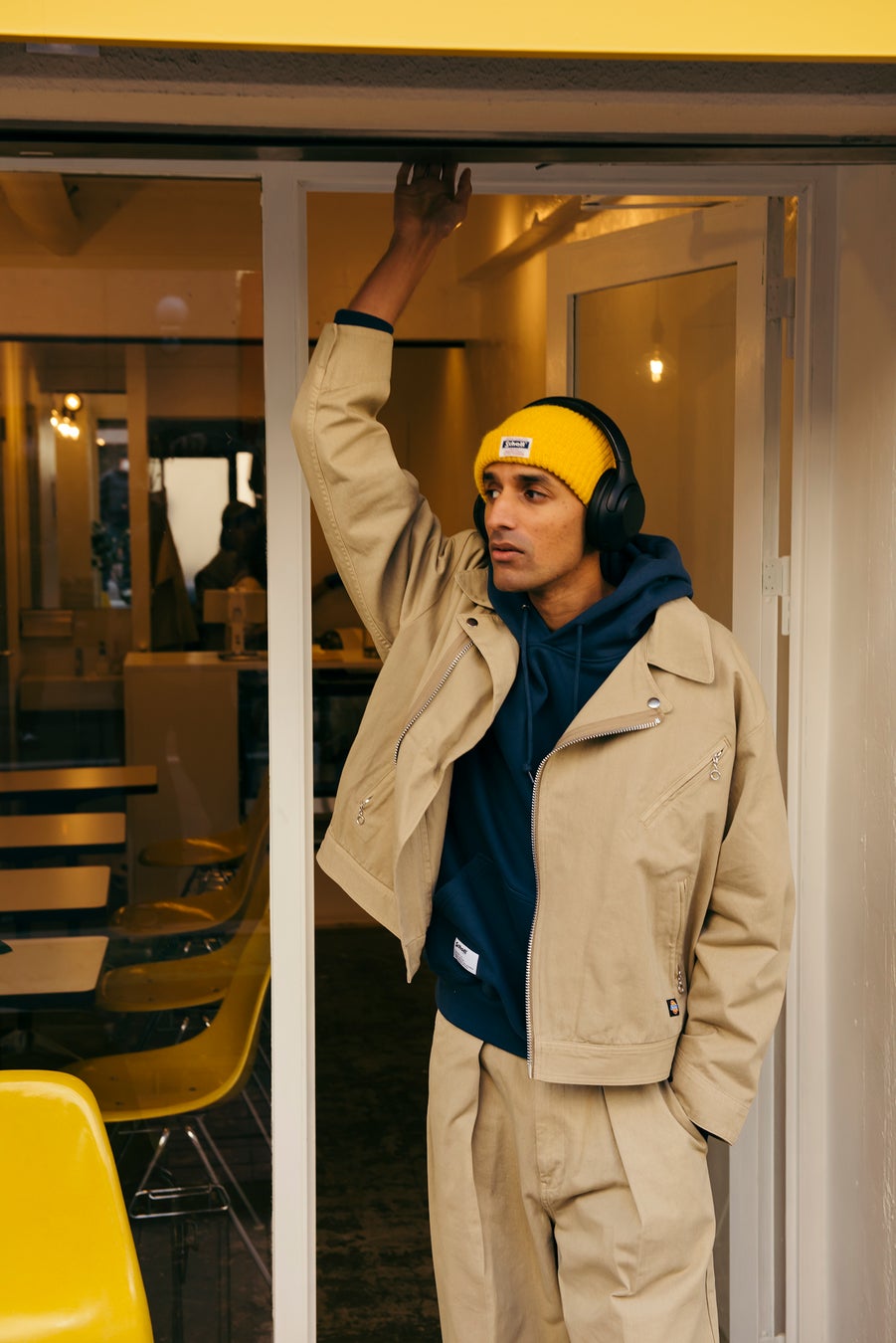コットン素材でもライダースを感じるパターンメイキングにも注目。