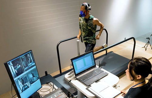 ASICS RUNNING LABで専門機器を用いてAT値(無酸素性作業閾値)を測定し、ランニング能力向上のための方針を提案します。