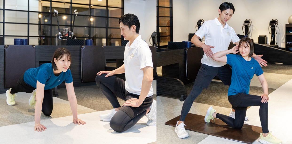 動きの評価、姿勢分析を再チェックし開始前と比較。パーソナルトレーニングでのエクササイズ総括を実施し、以降のセルフトレーニングを効果的におこなえるようアドバイス