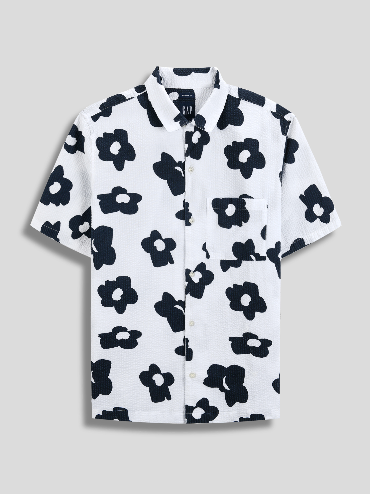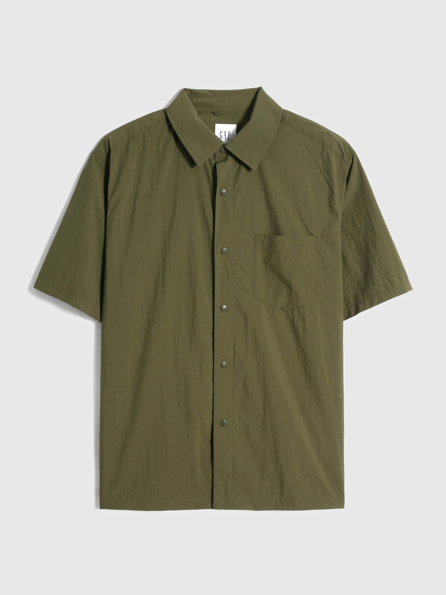 左から:GAPミニアーチロゴ ピケ ポロシャツ ¥4,490、ソフトポロシャツ ¥3,990、シアサッカーシャツ ¥5,990、FREE&FLOW ナイロン オーバーサイズ シャツ ¥7,990
