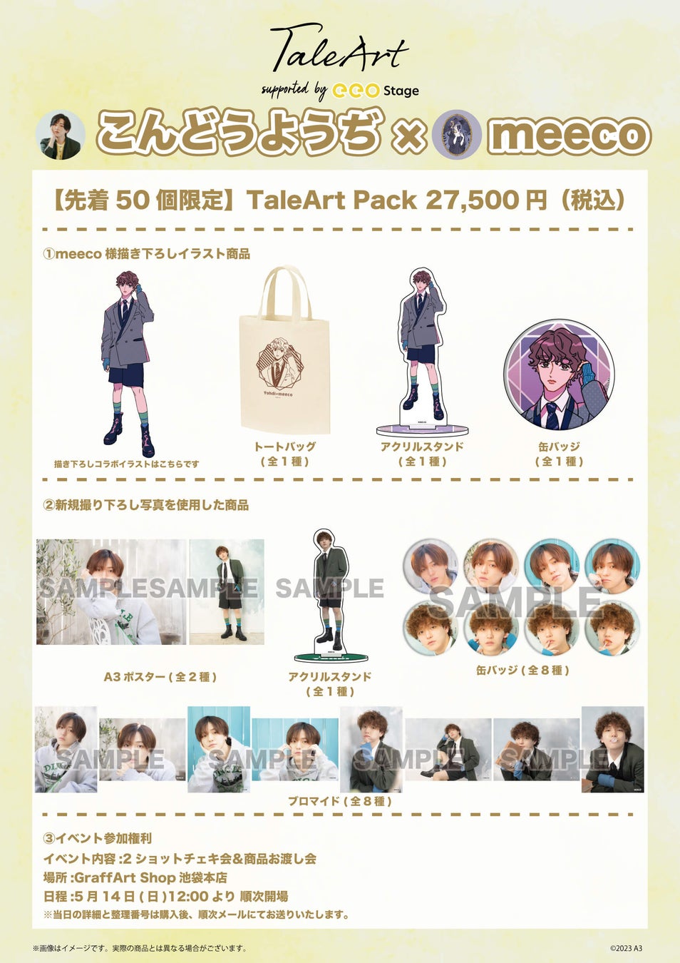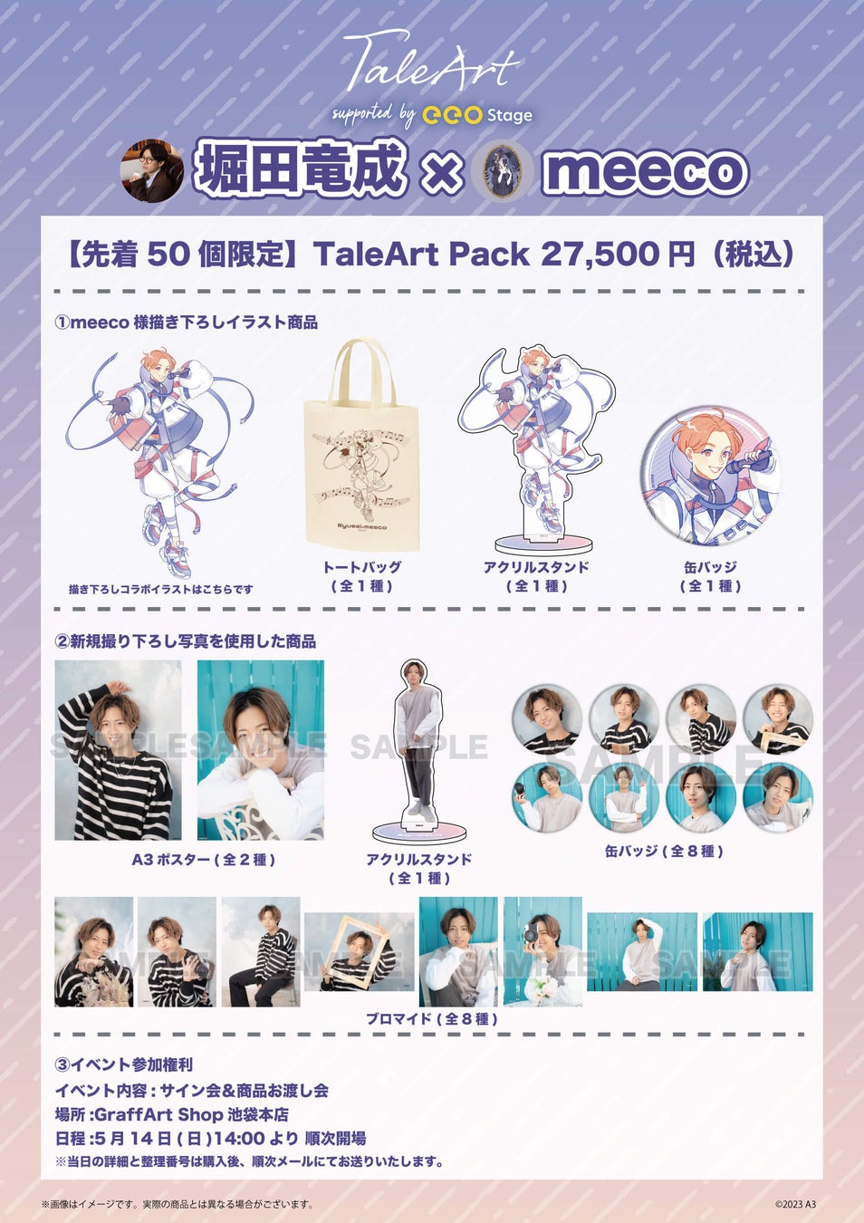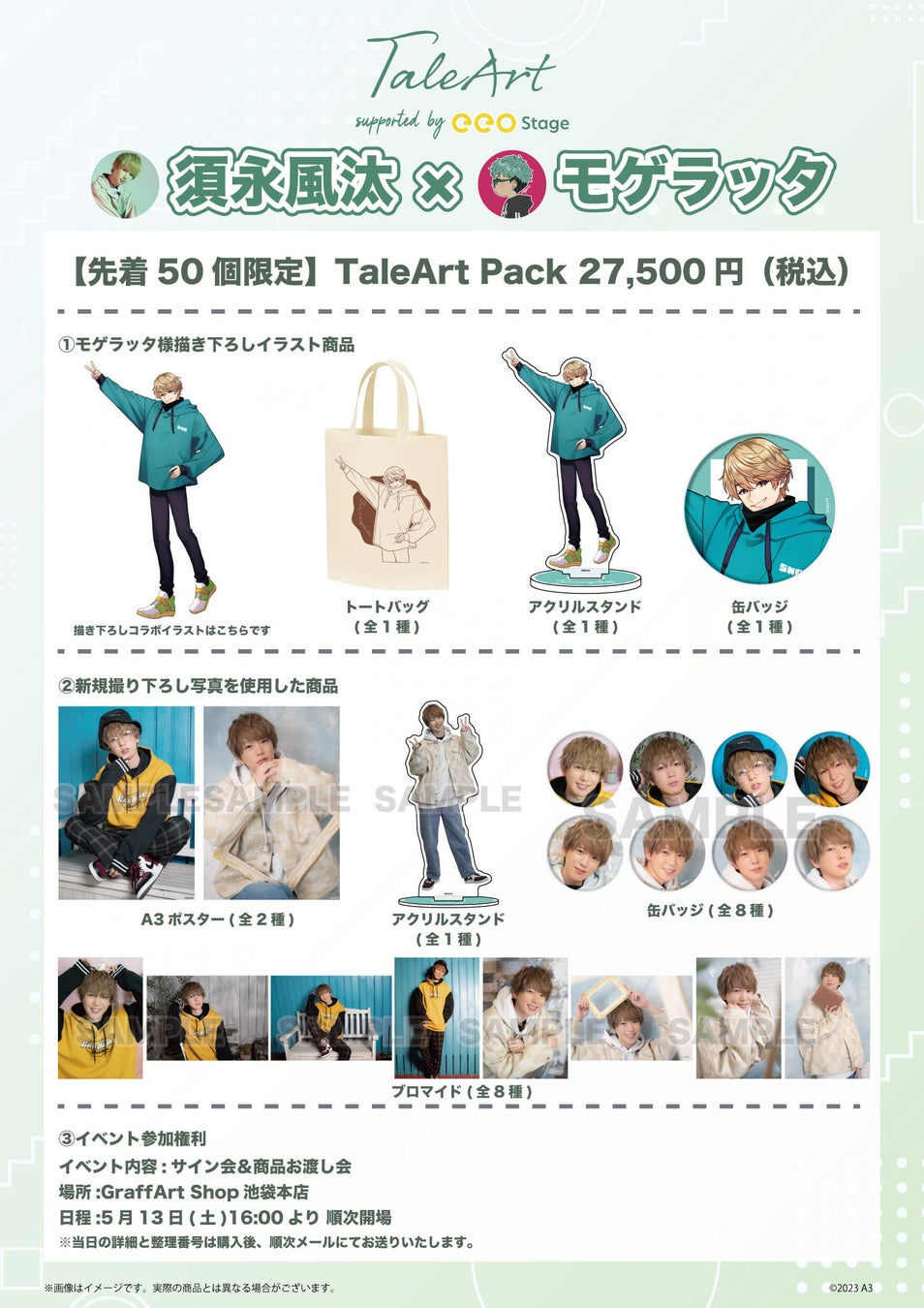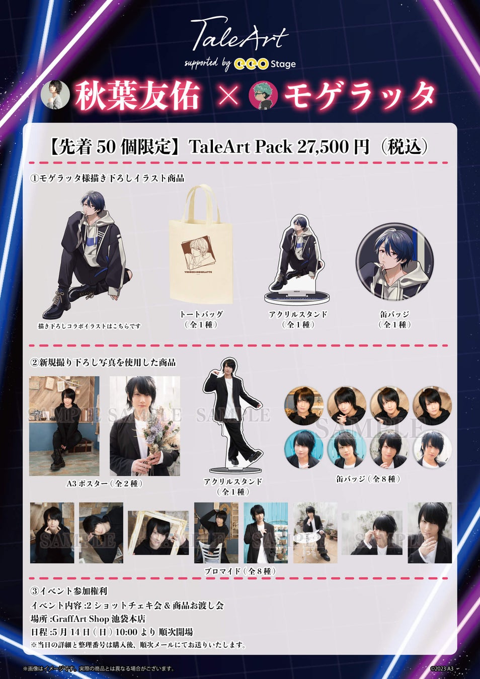 本企画では描き下ろしイラストと、撮り下ろし写真を使用した新作グッズが含まれる「TaleArt Pack」を発売! さらに新作グッズが手に入るだけでなく、後日開催される商品お渡し会イベントに参加できます!!