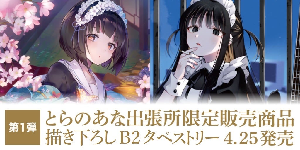 株式会社虎の穴(本社:東京都千代田区、以下とらのあな)は、2023年4月25日(火)よりショップインショップとして展開中の全国の「とらのあな出張所」にて、人気作家4名の描き下ろしによる第1弾商品の【とらのあな出張所限定B2タペストリー】を発売いたします。
