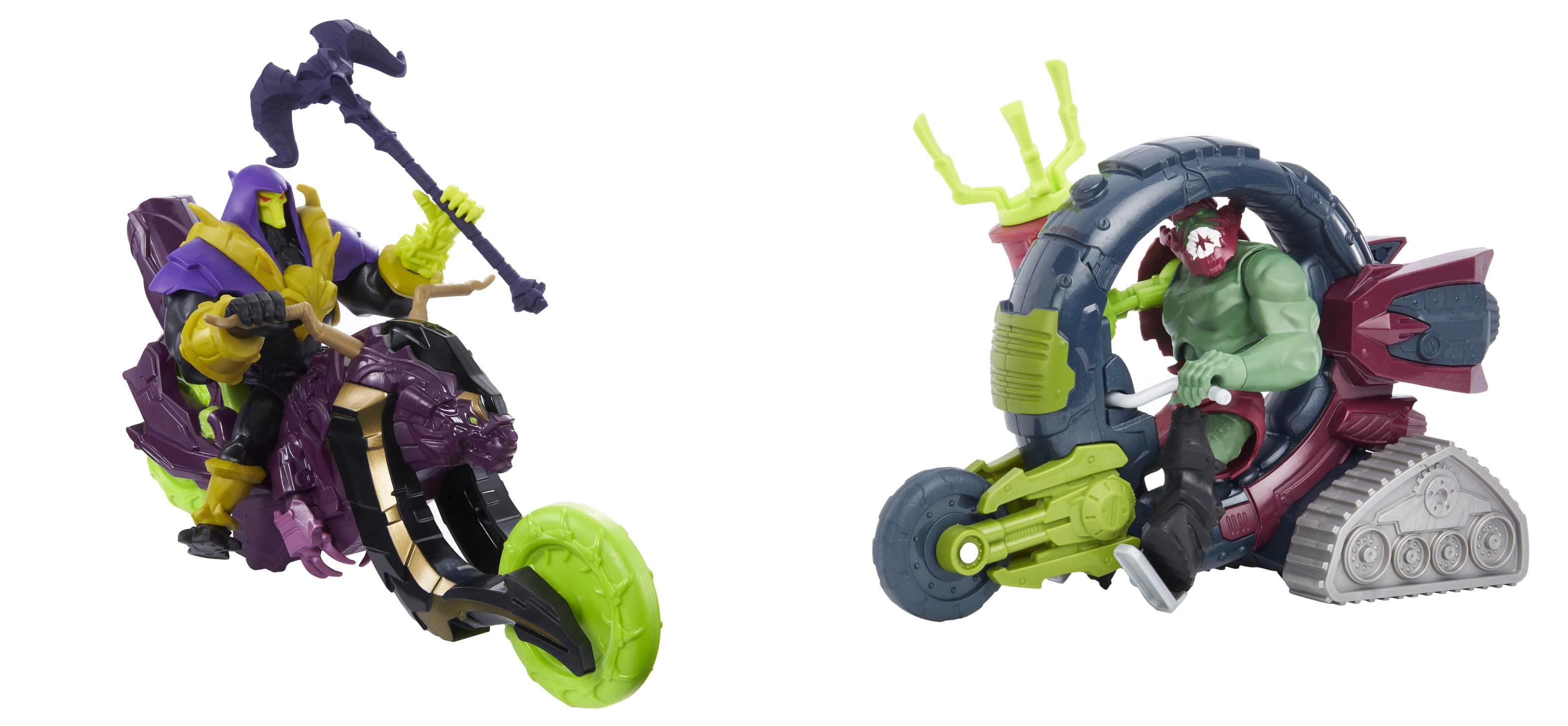 NETFLIXで放送中の『ヒーマンとマスターズ・オブ・ユニバース』に合わせたビークル付きフィギュアです。ビークルの車輪が動くので、本物さながらのシーンを再現して遊ぶことができます。