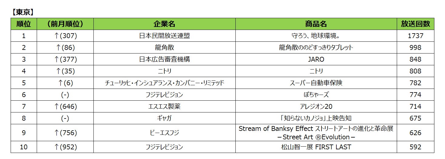 医薬・住居・求人関連CMが上位に、順位も大きく変動