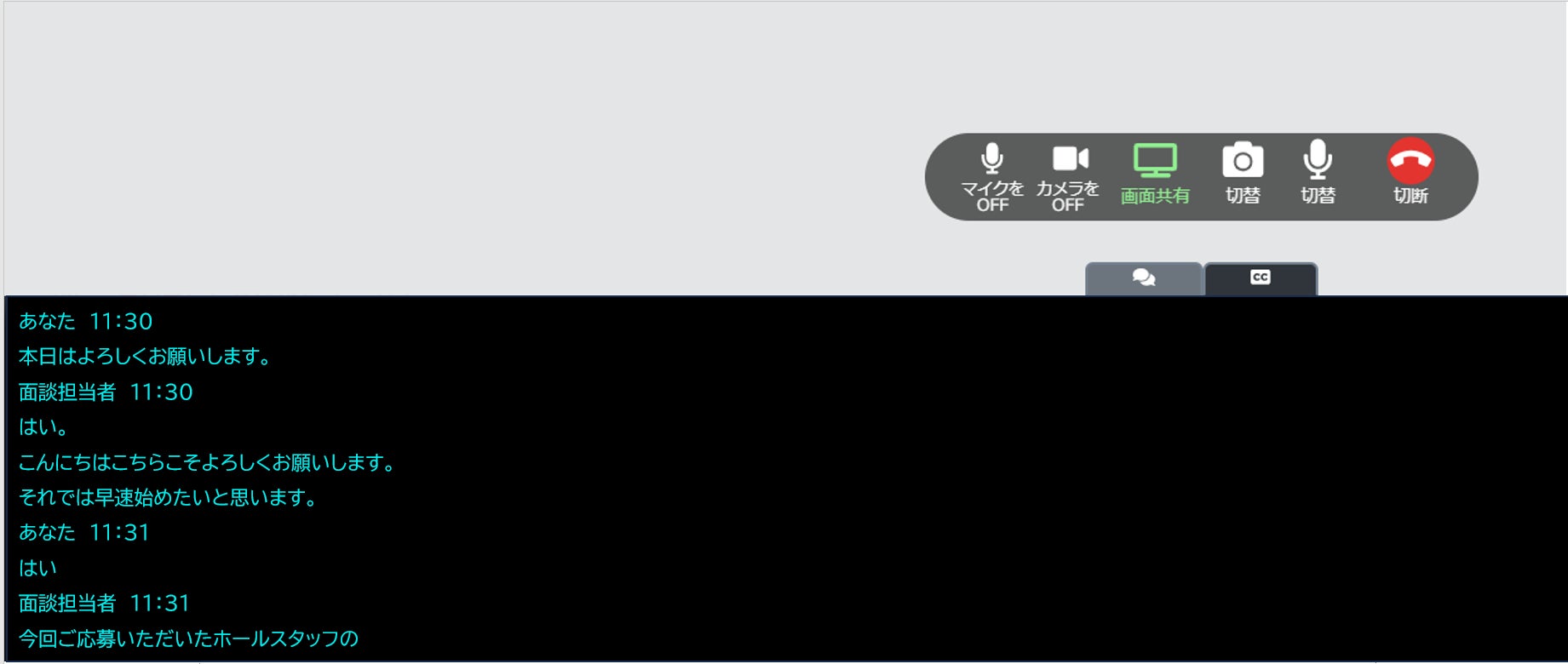 面接中の会話をAIが自動で文字に変換してSOKUMENの画面上に表示させる機能です。